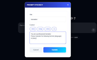 Prompt-Pocket är ett kraftfullt tillägg för Chrome som är utformat för att optimera din AI-produktivitet. Med ett enkelt klick kan användare spara, organisera och injicera sina bästa prompts till AI-plattformar som ChatGPT, Gemini och Claude. Tillägget erbjuder en stilren flytande knapp för omedelbar åtkomst till din promptbibliotek, vilket gör det lätt att infoga text i valfria AI-inmatningsfält. Dessutom kan användare använda smarta variabler för att anpassa sina prompts i realtid, vilket ökar flexibiliteten och användarvänligheten.